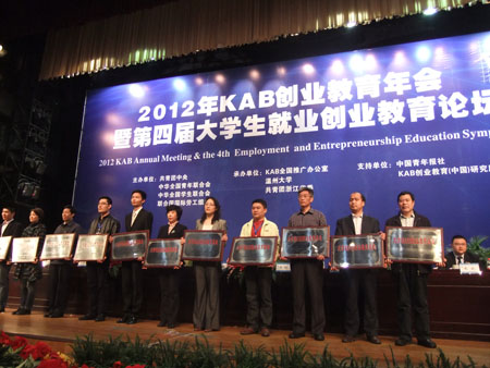2012年3月29日上午,由共青团中央和全国青联、全国学联、联合国国际劳工组织主办的“2012年KAB创业教育年会暨第四届大学生就业创业教育论坛”在温州大学举行。共青团中央书记处书记、全国青联副主席卢雍政,联合国国...