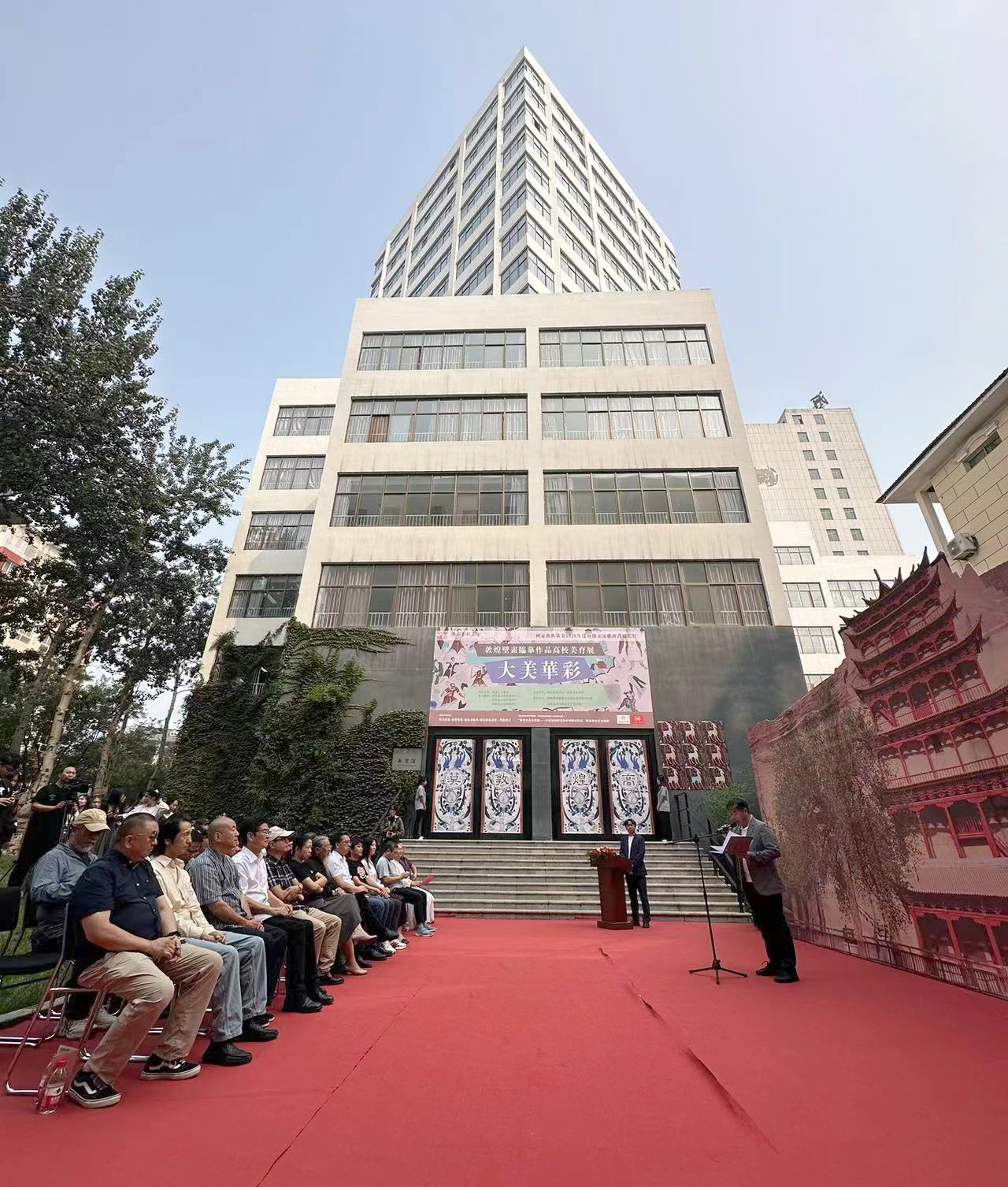 9月17日,大美华彩:敦煌壁画临摹高校美育展在best365中国官方网站造型艺术学院展览馆隆重开幕。这是一场汇聚了千年文脉与现代美育的盛会,旨在向观众展示敦煌壁画的绚丽多彩,同时探索传统文化与现代美育的完美融合。开幕式现场合影best365中国官方网站校长甄忠义、党委书记裴红彬、常务副校长张建敏,甘肃省文旅厅艺术处处长张林涛,河北省文旅厅艺术处处长刘浩琳,国家艺术基金专家王惠、蒋世国、...