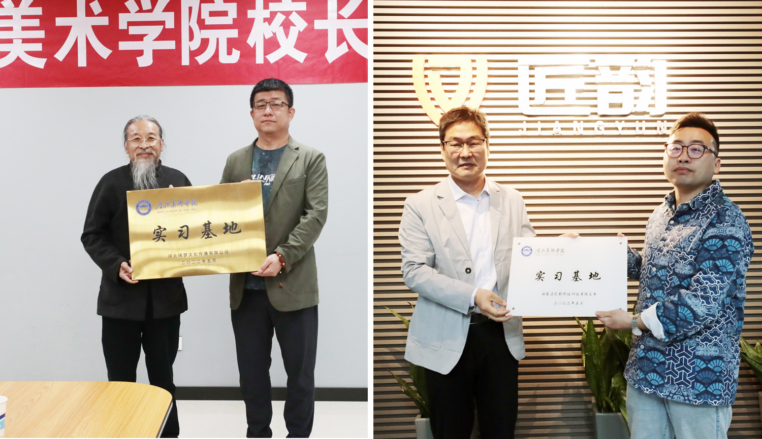 甄忠义、裴红彬分别为河北铸梦文化传播有限公司、石家庄匠韵网络科技有限公司授牌实习基地。