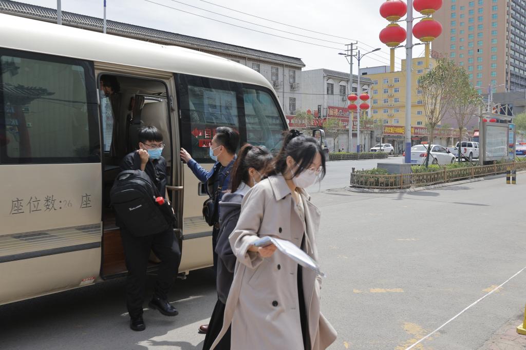 清晨6时,专车抵达校门口,学生们已有序排好队,每辆车有两名辅导员老师全程陪同,点对点负责学生考试及往返工作。