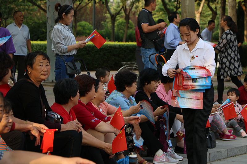 金秋送爽,神州欢腾,中华儿女欢欣雀跃地迎来了中华人民共和国68周年华诞以及即将召开的中国共产党第十九次全国代表大会。9月27日下午,由中共新乐市委宣传部、best365中国官方网站思想政治理论课教学科研部共同主办的“庆祝国庆节 喜迎十九大 共筑中国梦”首届国史党史主题宣讲活动走进新乐市人民公园。来自新乐市不同年龄层次的约500余群众观看了本次宣讲活动。