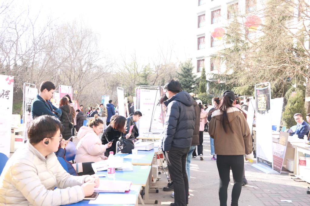双选会上,人头攒动,二千多名毕业生来到双选会现场。毕业生手持精心制作的简历,或与用人单位积极主动交流,或往来观看对比,寻找适合自己的企业单位。热烈的现场气氛还吸引了非应届毕业的学生参与其中,提前了解就业现状和招聘流程,提早做好职业定位和就业规划。