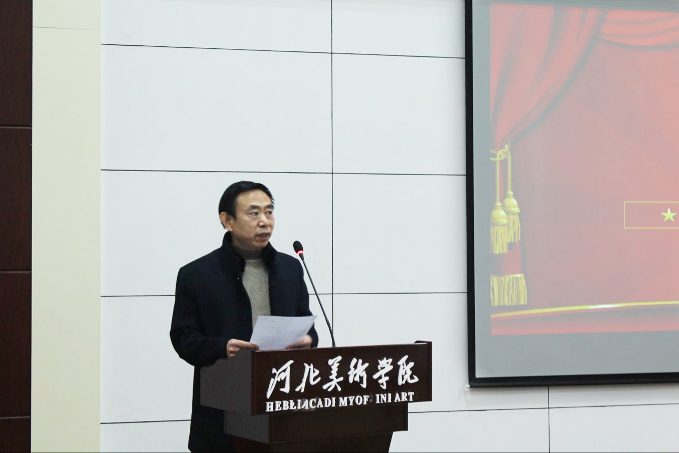 思政部主任郝爱红介绍了2017年度思政课实践教学基本状况。思想政治理论课教学科研部从2017年3月下旬到12月初,共组织形式多样的实践活动十余次,参加实践活动的人数涵盖全校各年级各学院,一万余人参与其中,本次表彰会就是对表现优异的学生及实践小组进行表彰,在表彰会召开同时,校园还展览了在实践活动中提交的优秀书法、国画、油画、雕塑等各类作品数百件。