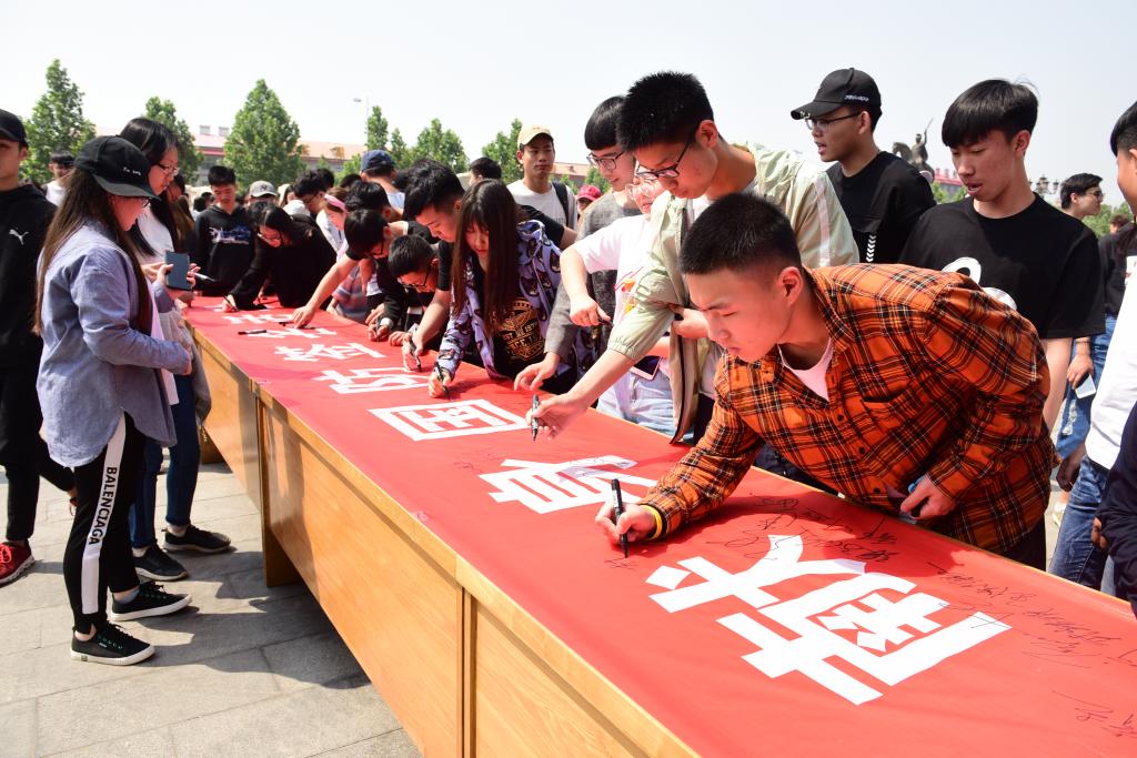 仪式结束后,出席领导、师生代表共同观看了精彩的“青春有梦、强军有我”文艺演出,校武装部征兵办还组织了国防知识图片展,发放了2000多册高校征兵宣传册,设立咨询站为大学生讲解政策,举行题为“少小立志报国,长大踊跃参军”的千人签名活动。