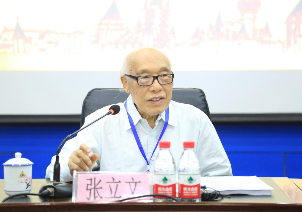 中国人民大学哲学院一级教授、当代知名学者、哲学家张立文教授做主旨讲话。张立文教授围绕“中国哲学为什么要创新;怎样创新;创什么新”三个问题进行阐述。张教授表示中国哲学体现了时代精神的精华,走向当代、引领未来。时代精神简单地说是时代发展中提出的问题、冲突、矛盾的解决方法和理念。这是一个万物连通的时代,互联网、大数据、人工智能,在过去做不到的现在都能做到,然而矛盾却越来越多。国与国之间、人与人之间、社会与社会之间怎样解决矛盾冲突,只能是和谐、合作、和平才能达到共享、共赢。中国哲学顺应时代发展进行创新才能掌握话语权才能“自己讲”和“讲自己”,才能表现中华民族的自尊和文化自信。