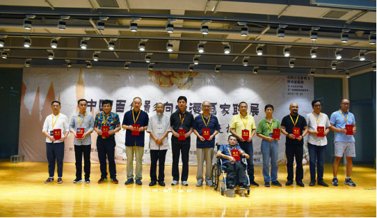 甄忠义校长为漫画家们颁发入展证书