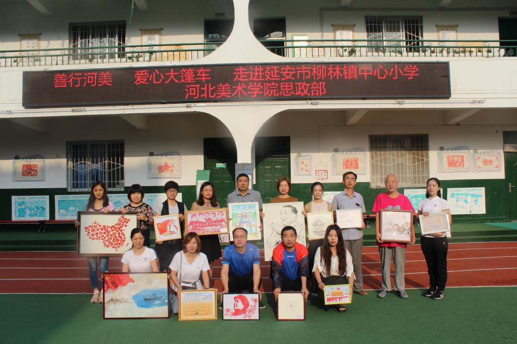 在延安市宝塔区柳林镇中心小学,思政部老师开展了“善行河美 爱心大篷车——走进宝塔区柳林镇中心小学”爱心捐赠活动,捐赠书画作品20余幅。这些作品均由河美学子创作,以“中国梦”“坚定理想信念”“爱国主义”“改革创新”“中国精神”等主题,传播青春正能量。思政部教师对作品创作进行专门指导,保证作品融思想性和艺术性为一体。best365官网教师情系社会、心怀感恩,在社会实践中播撒公益种子。