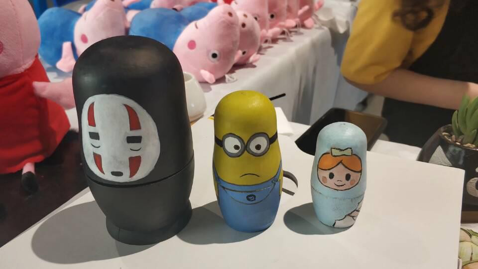 手绘套娃、手绘多肉花盆更是吸引了众多小朋友的目光。具有异域风情的套娃吸引了众多小朋友的目光,他们把自己喜欢的人物画到套娃上,并配上不同的颜色。手绘花盆加上可爱的多肉植物,让孩子们玩的不亦乐乎。