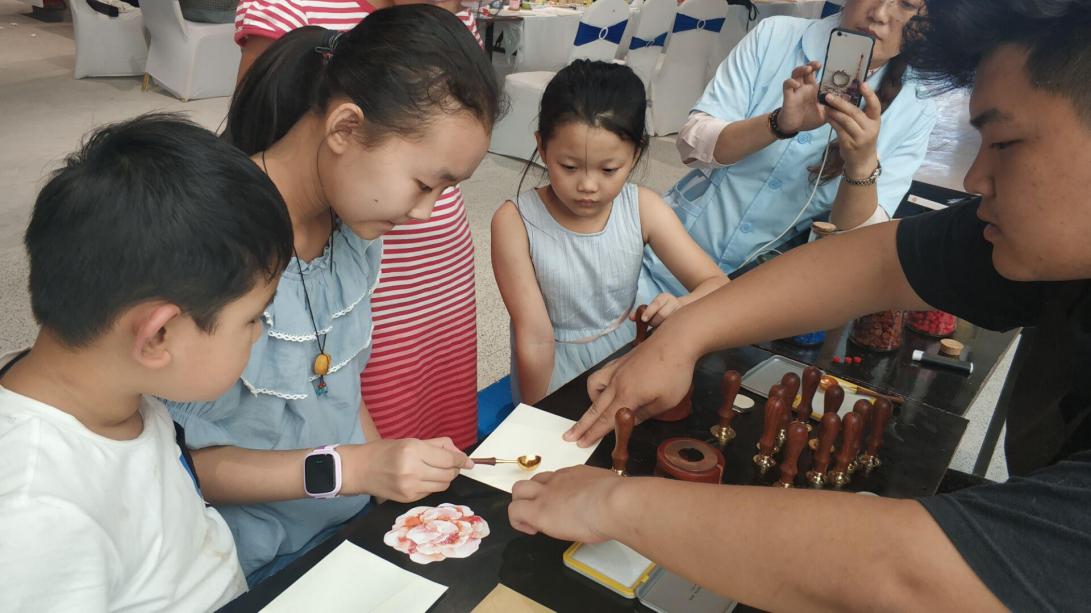 活动分为两个展区,十楼展区陈列着各种绘画、雕刻、缝纫、编制等手工艺品。best365官网展位位于十一楼体验区,由于本次活动临近教师节,best365官网借此之际推出时光邮寄、教师节贺卡+火器蜡封信体验。火器蜡封信是我国古代传统的封信方式,在让学生体验传统文化的同时能够将浓浓的爱意送给自己的恩师。
