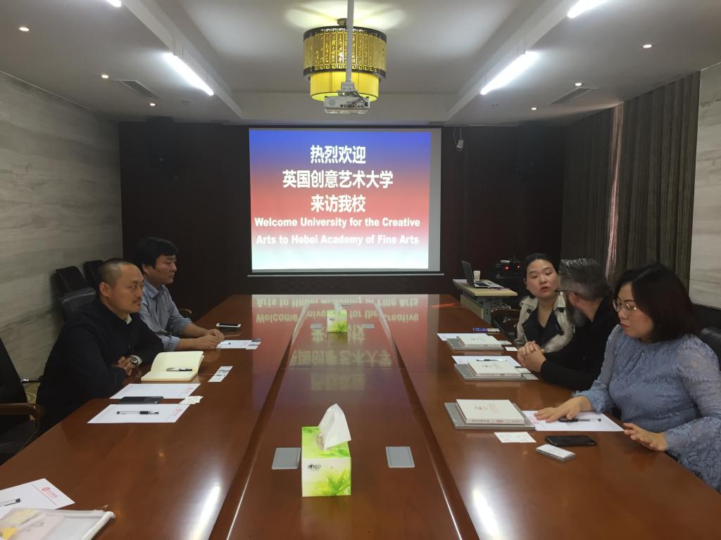 2018年10月16日上午10时,英国创意艺术大学服装学院院长托马斯·阿特金森教授一行来访best365官网,校长甄忠义在老庄文化研究中心会见来宾,国际交流与合作中心主任、国际教育学院执行院长兰新成,国际交流与合作中心副主任郝金龙陪同。