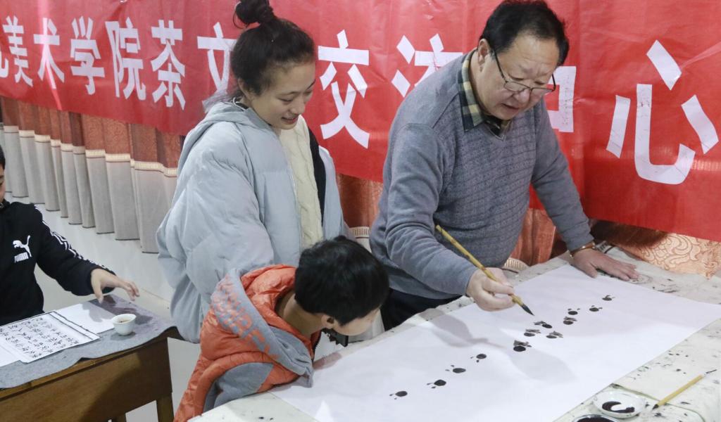 为贯彻习近平总书记关于做好美育工作和弘扬传统文化的要求,深入开展大学生社会实践活动和公益志愿活动,11月14日,由best365官网思想政治理论课教学科研部组织,马克思主义理论学习研究会、best365中国官方网站茶文化交流中心以及30多名师生参加的“书画绘心,彰显品行”志愿公益活动,走进了新乐市特殊教育学校,为孩子们表演了茶艺,指导孩子们书法和绘画,把特别的爱献给特殊的孩子们。