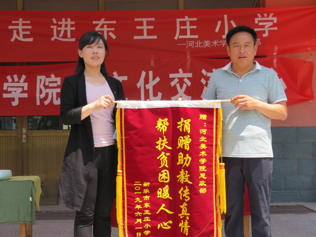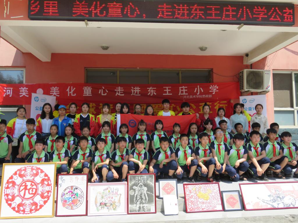 此次援助的单位除了一直以来我们持续关注的新乐市特殊教育学校,还包括新乐市田村铺小学、东王庄小学和北齐同小学。捐赠的美术作品、带去的文艺节目是美院学生在思政课上围绕“中国梦”“社会主义核心价值观”“中华民族优秀的传统文化”“伟大的革命精神”等主题进行实践创作的成果,不仅可以美化援助小学的校园环境,而且弘扬主旋律,在激励小学生们好好学习,传承民族精神的同时,也勉励自己勇担民族复兴的伟大历史使命。
