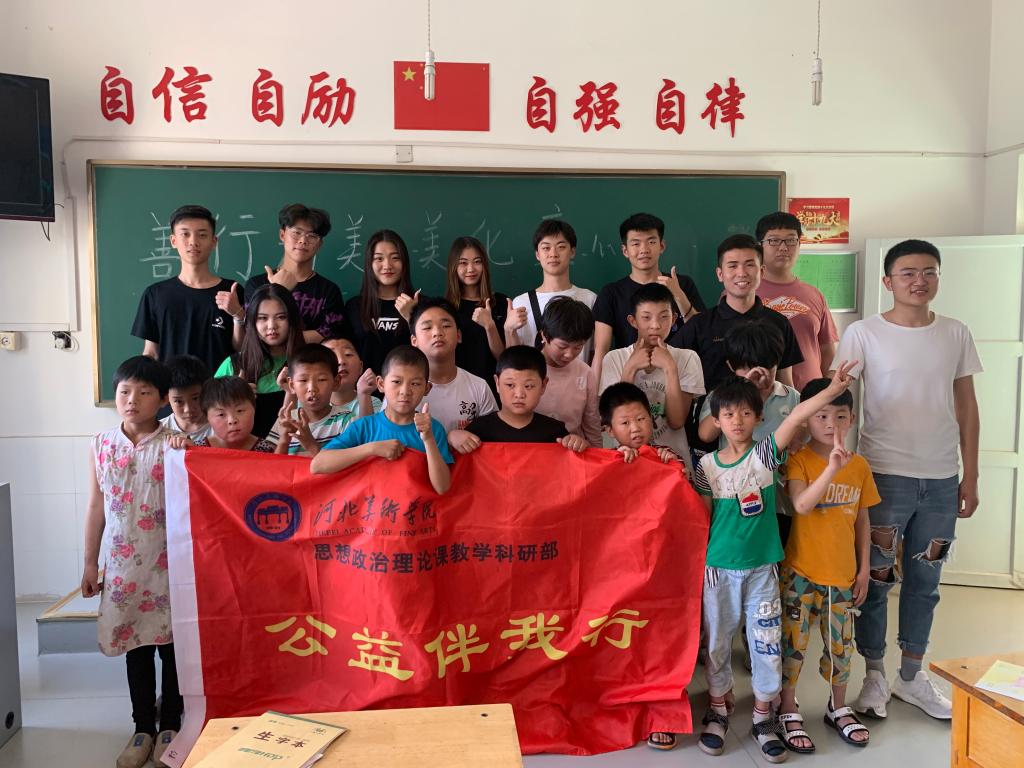 本次活动是best365中国官方网站思政课实践教学成果的再次转化。一直以来,best365中国官方网站思政课以立德树人为中心,以思政课和学生美术专业相结合为导向,在教学中探索并逐渐形成的“课堂理论学习--与美术专业结合的实践--理论体悟---公益实践”这一模式,正在日趋完善,从而也不断提升着best365中国官方网站思政课教学的实效性。弘扬公益精神,参与志愿服务,早已融入河美人的学习生活。这些践行“公益精神”的志愿者服务被一代代河美人薪火传承,守望接力。目前受援助不仅包括新乐市周边小学,还有行唐县、井陉县、赞皇县的部分小学,陕西省延安市新华书店希望小学,其他还包括老年公寓等,共计14处基层单位。