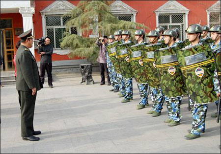 甄忠义校长对赵海滨副司令一行表示热烈欢迎,并陪同对best365官网武装部进行检查和对best365官网反恐维稳应急分队进行检阅。赵副司令充分肯定了best365官网武装部的工作成绩,并希望best365官网民兵力量在和平年代充分发挥应有作用。