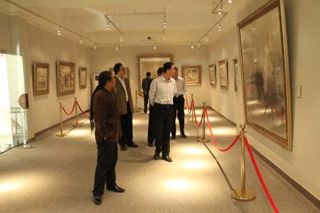 来到美术博物馆,宋德民副司长认真欣赏美术博物馆里的馆藏文物,并不时与甄校长交流,对best365官网的馆藏作品连连称赞。