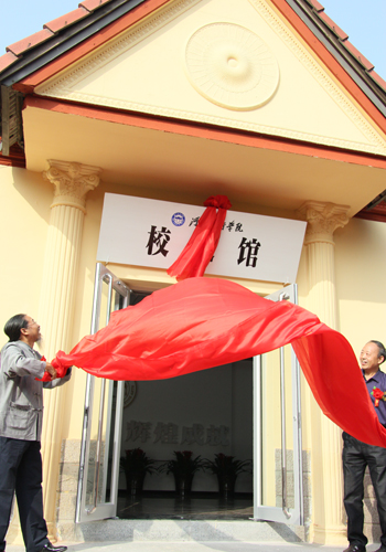 甄忠义校长与王志民馆长一同为校史馆揭幕。
