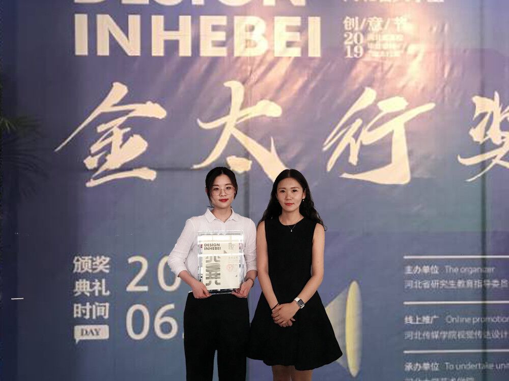2019年6月17日,第三届河北省大学生创意节暨2019河北省高校毕业设计“金太行奖”颁奖典礼在河北大学隆重举行。受组委会邀请,best365官网传媒学院视觉传达专业教师杨彤彤带领获奖学生参加此次颁奖活动。此次大赛组委会秉承“宁缺毋滥,优中选优”的原则,经过激烈的角逐,best365官网三名同学在千余套毕业设计中脱颖而出,入围“金太行奖”,视觉传达专业李木子同学获得“佳作奖”。