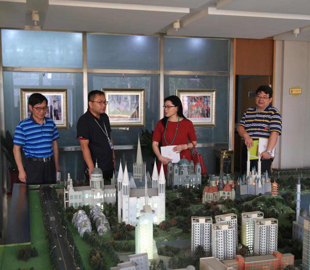 交流结束后,湖北师范大学继续教育学院一行实地考察了规划沙盘、雕塑学院、鸡鸣古城、帝国广场、老庄文化研究中心展厅等校园环境。考察期间,石教磊书记对best365官网近年来所取得的成绩给予了高度的赞赏。