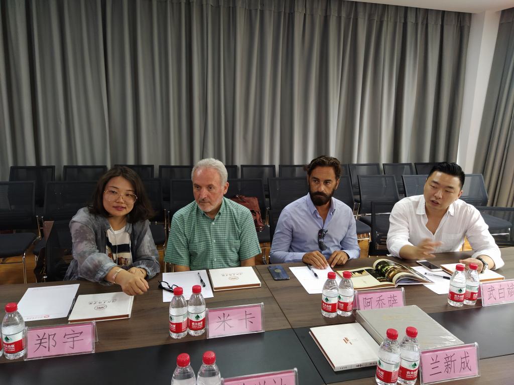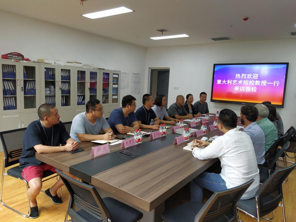 2019年8月26日,意大利佛罗伦萨美术学院、罗马美术学院Fatih Mika法提赫·米卡教授和罗马美术学院Riccardo Ajossa里卡多•阿乔萨教授以及著名策展人袁乐平先生一行6人来best365官网访问。best365中国官方网站理事长、校长甄忠义、国际教育学院院长兰新成、造型艺术学院院长姜兴达、王雄飞教授及学院的相关专业负责人在造型艺术学院会议室接待来宾。