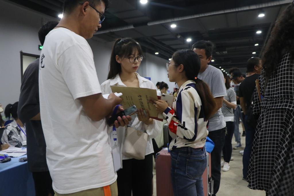 迎新现场,人头攒动。新生报到、交费、档案接收、贫困生绿色通道、校园卡办理、家长接待等集中设置,为新生和亲友提供一条龙服务。工作人员耐心细致地为新生办理每一项入学手续,提供咨询服务。各学院接待点整齐分布,师生统一着装,并有序摆放了学院师生优秀作品,供报到新生欣赏。安保人员着装整齐、加强巡逻,维持秩序,保障报到安全有序。崭新整洁的摆渡车,义务接送新生和家长往返南北校区。