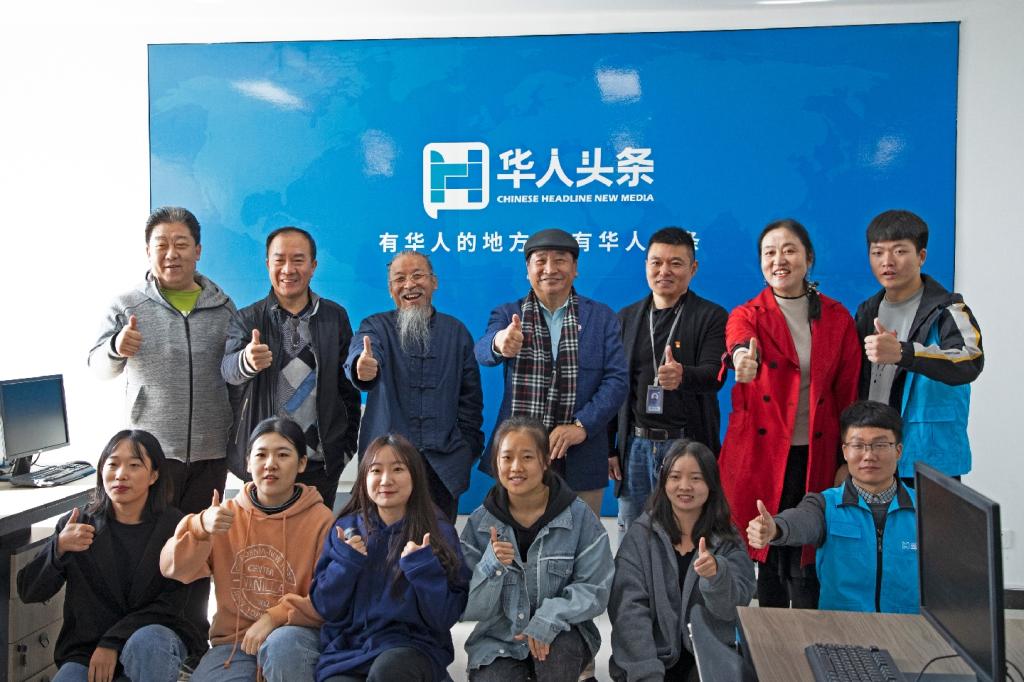 随后,宾主一行来到华人头条河北频道工作室,海外华文媒体研究中心主任董燕蓉教授向姜昆先生介绍了工作室的情况。作为传媒学院教学实训基地的华人头条,近年来发展势头迅猛,姜昆先生在全球巡演中多次接受过采访,对华人头条并不陌生。他热情地和同学们打招呼,询问参与工作的传媒师生们工作详情,与师生们合影并一起朗诵“有华人的地方就有华人头条”!