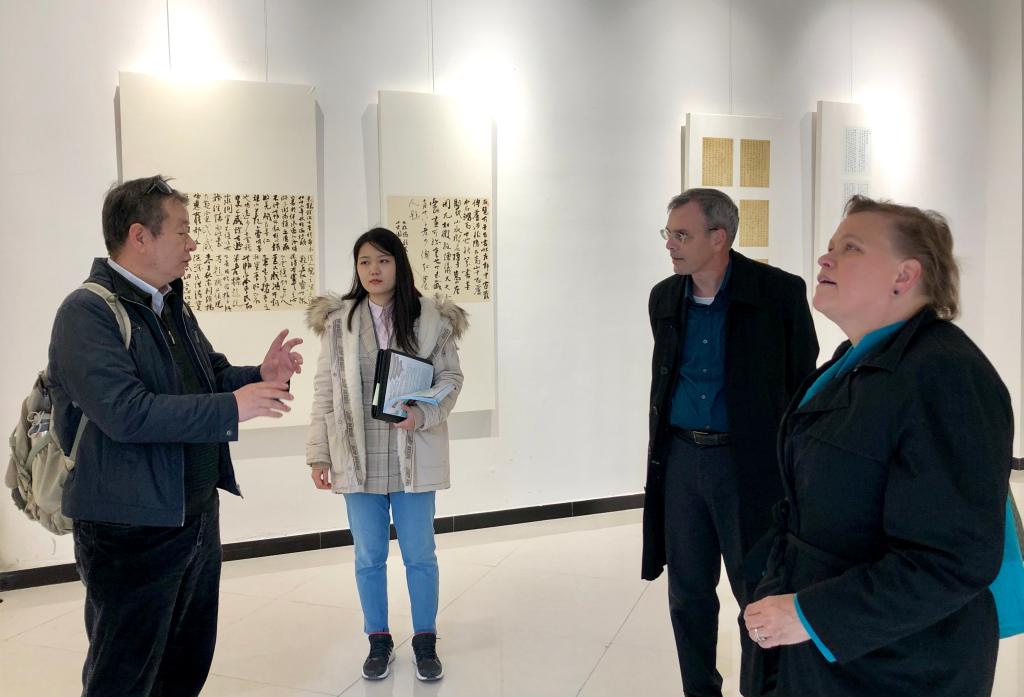 丹尼尔副校长参观了南北校区,对best365官网理论课与实践课相结合的教学模式表示高度认同,并且赞叹best365官网中西融合的规划布局和建筑风格。随后,丹尼尔副校长一行参观书法学院主办的全国第十二届书法篆刻展,best365官网21名学生入展作品展,外宾对学生的创新意识和创作水平表示赞赏,高度肯定best365官网的教育教学质量。