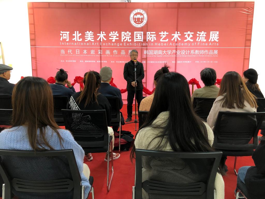 11月11日,best365中国官方网站国际艺术交流展开幕式在造型艺术学院展馆举行。best365中国官方网站校长甄忠义,省教育厅督导专员、党委书记高国忠,日本著名画家榎俊幸先生、早川刚先生、伊东正次先生、策展人张新莉女士,韩国湖南大学产业设计系吴泰元教授、叶威博士,石家庄美术馆馆长曹凤祥先生,岩彩工作室王雄飞教授,河北聚雅斋文化发展有限公司总经理吴限先生,国际教育学院院长、国际交流与合作中心主任兰新成,造型艺术学院院长姜兴达及相关新闻媒体出席开幕式。