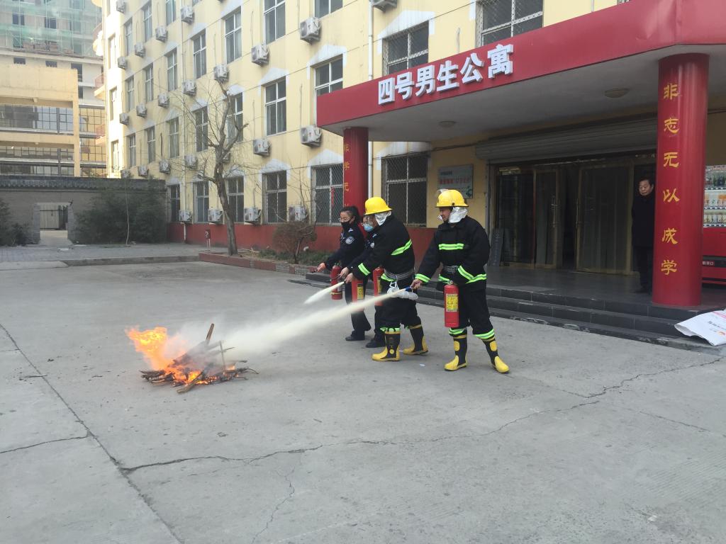 为增强学校消防应急处置能力,提升微型消防站应对初期火灾的能力,3月16日上午9时在四号学生公寓,安全工作处组织开展消防演练,本次演练由安全工作处鄂华威处长组织实施。