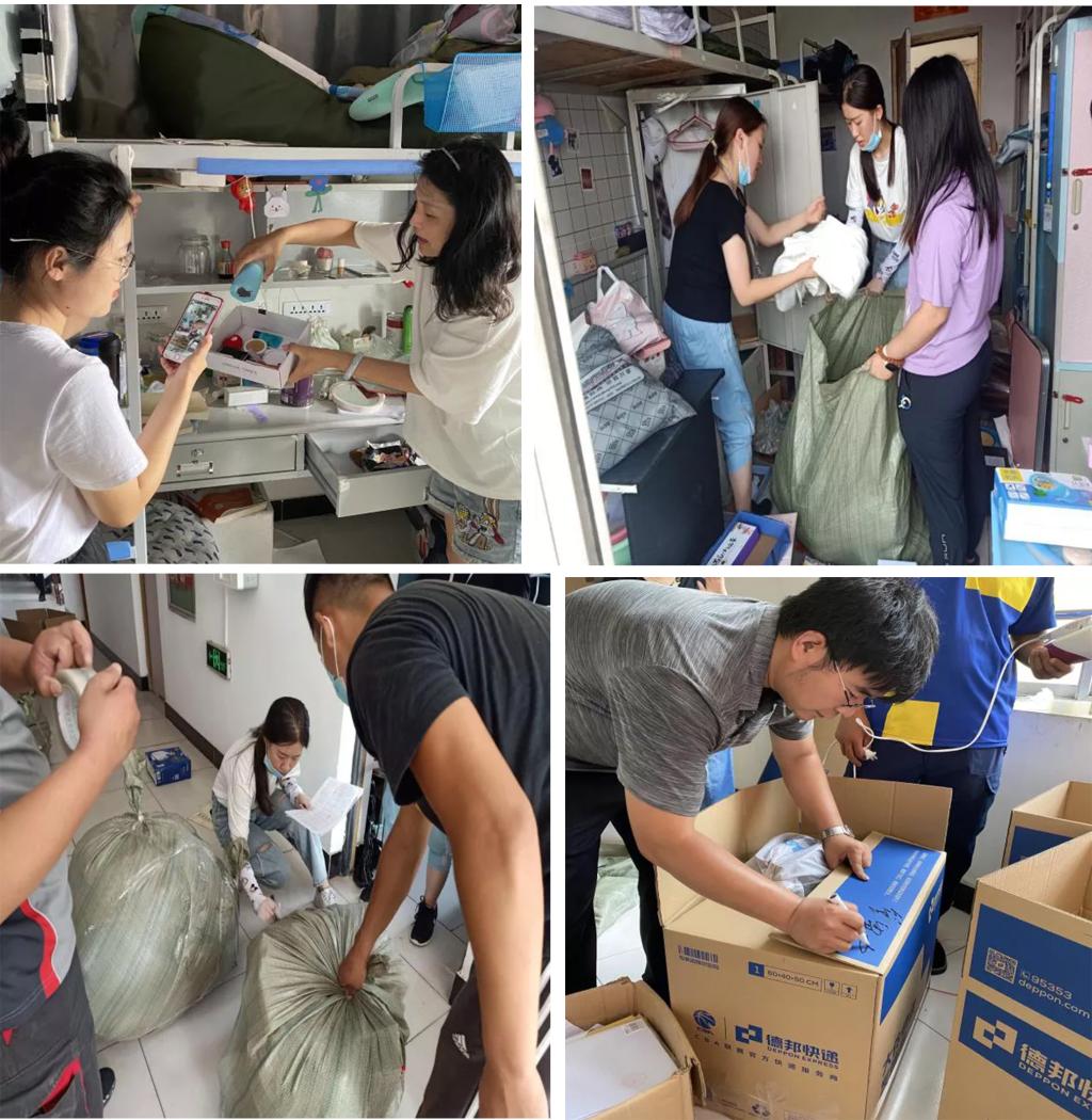 毕业生物品邮寄是一个繁重浩大的工程,时间紧、任务重,但是老师们通过现场视频连线、拍照等方式,将学生的每一个抽屉、每一个角落都检查到位,辅导员与志愿者老师通过为学生提供细心、暖心、贴心的周到服务,让每一位学生都能满意、顺利、安全地收到自己行李物品,让毕业生感受到学校的温暖。