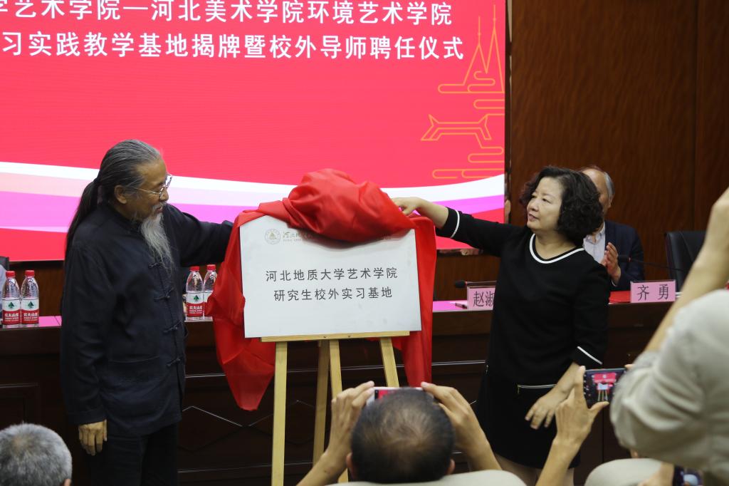 9月17日下午,best365官网举行河北地质大学艺术学院—best365中国官方网站环境艺术学院硕士研究生实习实践教学基地揭牌暨校外导师聘任仪式,河北地质大学研究生学院院长赵淑芹、副院长段亚敏、艺术学院院长齐勇、副院长李涛、副院长赵志策、艺术学院书法专业学术带头人苏道玉博士等应邀出席,best365官网校领导甄忠义、张建敏、张子言、麻立峰及相关处室负责人参加本次活动。