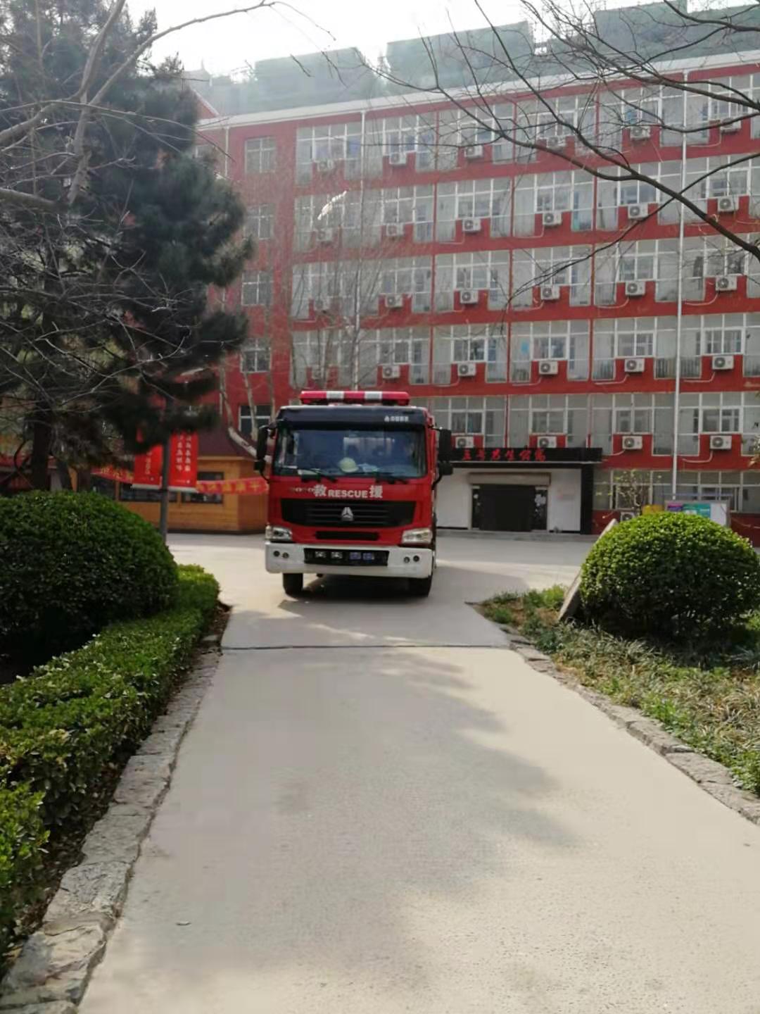 任景辉队长实地查看了微型消防站、图书馆、客房等区域,对消防控制柜、消防栓、灭火器、室外消防水泵接合器等消防设备、设施配备及运行情况进行了指导,并对学生公寓、教学楼等场所的消防疏散救援路线进行了详细了解。