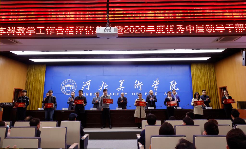 常务副校长张建敏宣读了《best365中国官方网站关于本科教学合格评估工作表彰决定》,党委副书记、副校长甄心恒宣读了《best365中国官方网站关于表彰2020年度优秀中层领导干部的决定》。与会校领导为32名先进个人代表、23名优秀中层领导干部颁发荣誉证书及奖金。高国忠书记为汪永江教授、甄忠义校长为陈斌夕同志分别颁发合格评估专家特殊贡献奖和校长特别奖。