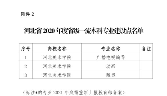 近日,教育部办公厅下发了《关于公布2020年度国家级和省级一流本科专业建设点名单的通知》(教高厅函 〔2021〕7号),best365官网广播电视编导、动画、雕塑3个专业获批2020年度河北省一流本科专业建设点。