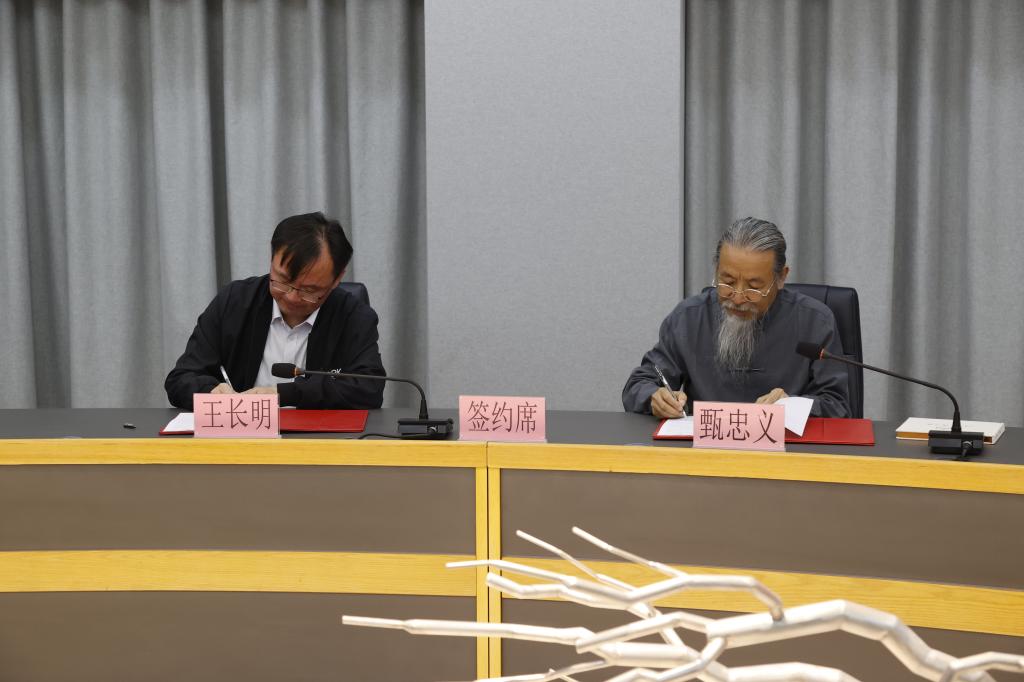 甄忠义与王长明代表两校签署国际教育交流备忘录。