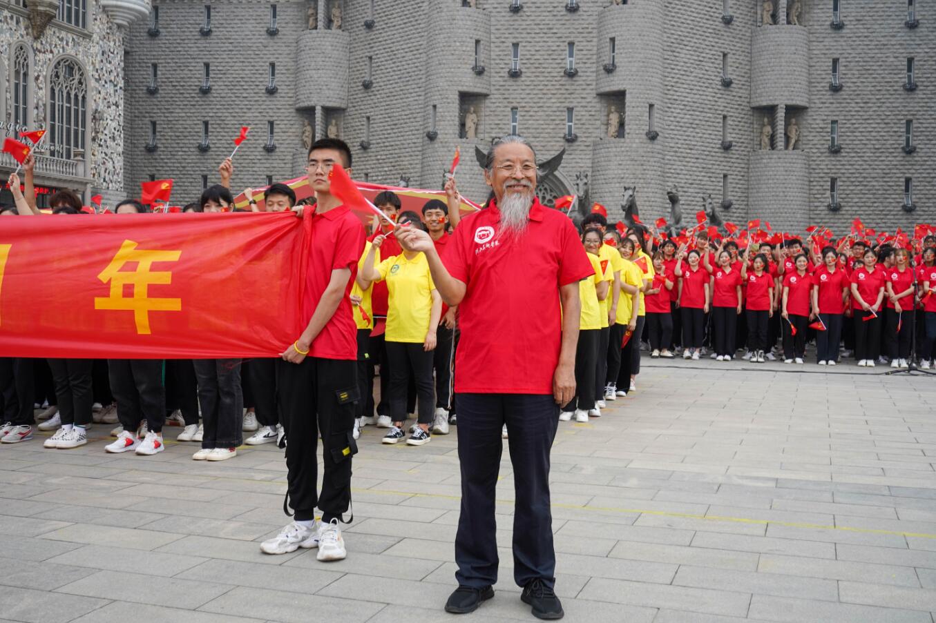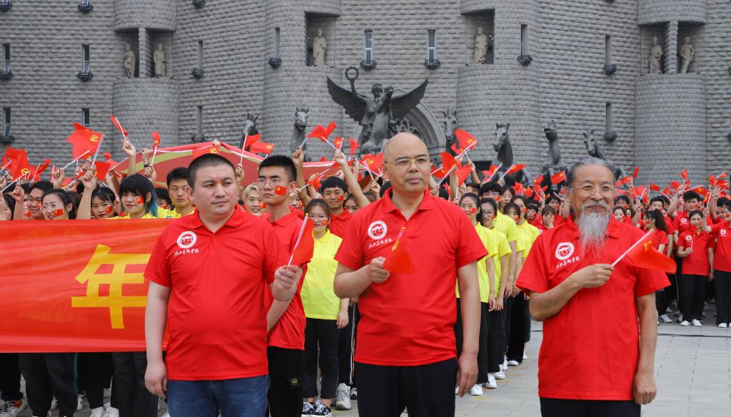 best365中国官方网站校长甄忠义,省教育厅督导专员、校党委书记高国忠,校长助理麻立峰身着统一服装与1700余名学生共同组成“党旗”和“100周年”的图形,并激情昂扬地演唱了《没有共产党就没有新中国》,歌声表达了师生爱党爱国的赤子之心,奉献青春的报国之志。
