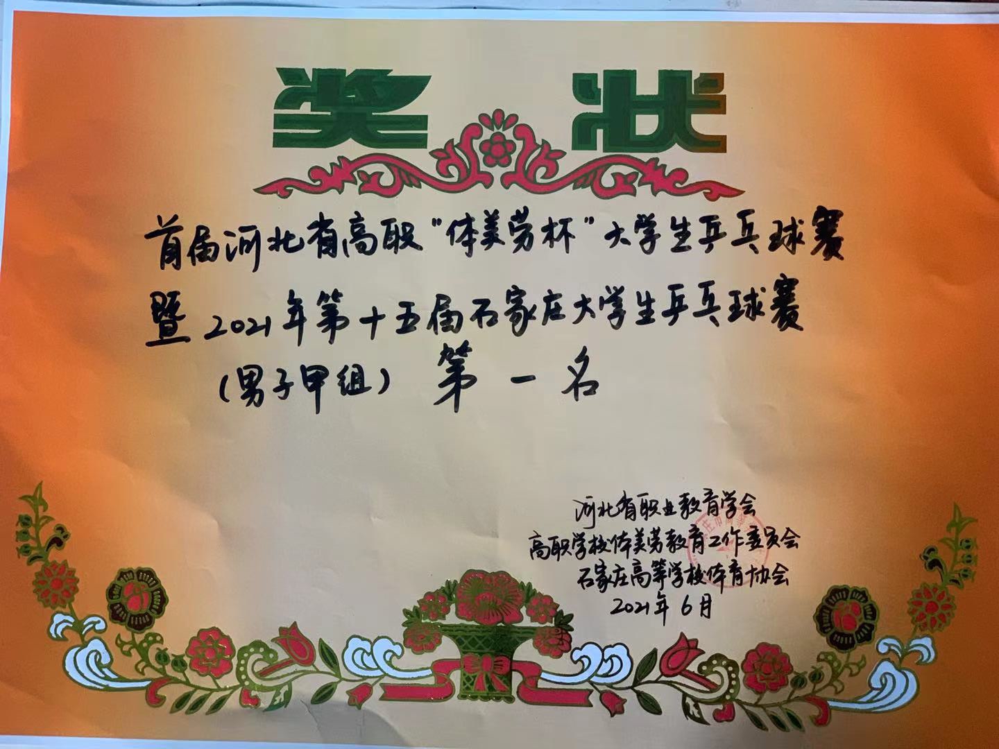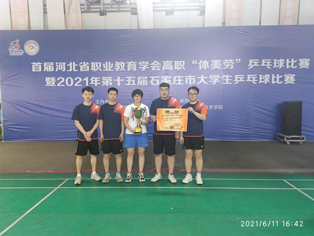 2021年6月11日,由河北省职业技术教育学会主办,石家庄高等学校体育协会、石家庄职业技术学院承办,首届河北省职业技术教育学会“体美劳”乒乓球比赛暨石家庄市第十五届比赛在石家庄职业技术学院游泳健身中心成功举办。河北地质大学、河北医科大学、石家庄学院、best365中国官方网站、河北师范大学等10支参赛队伍70余名运动员参赛,本届比赛设有甲、乙两个组别。best365官网男子乒乓球队参加了男子甲组比赛,比赛中“一路过关斩将”最终取得了男子甲组第一名,获得了运动成绩和精神文明双丰收。