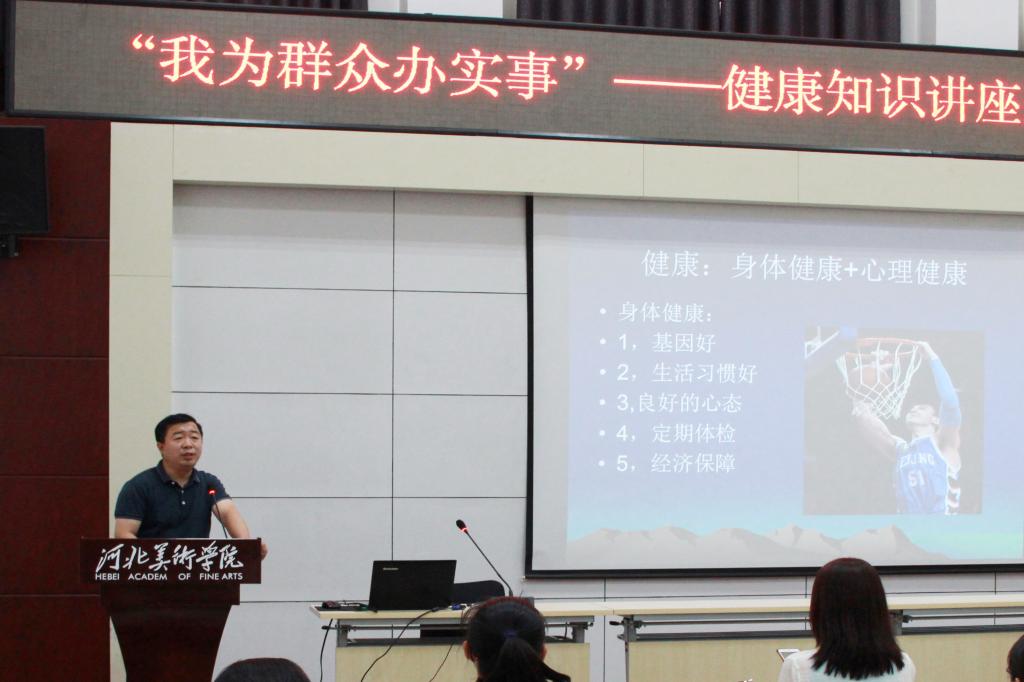 为深入开展党史学习教育“我为群众办实事”实践活动,进一步提高教职工的健康知识水平,best365官网工会特别邀请新乐市中医院外三科主任李建强作健康知识讲座。校党委副书记副校长甄心恒、动画数字艺术学院和影视艺术学院全体教师参加讲座。本次讲座由党委组织部部长郭珊主持。