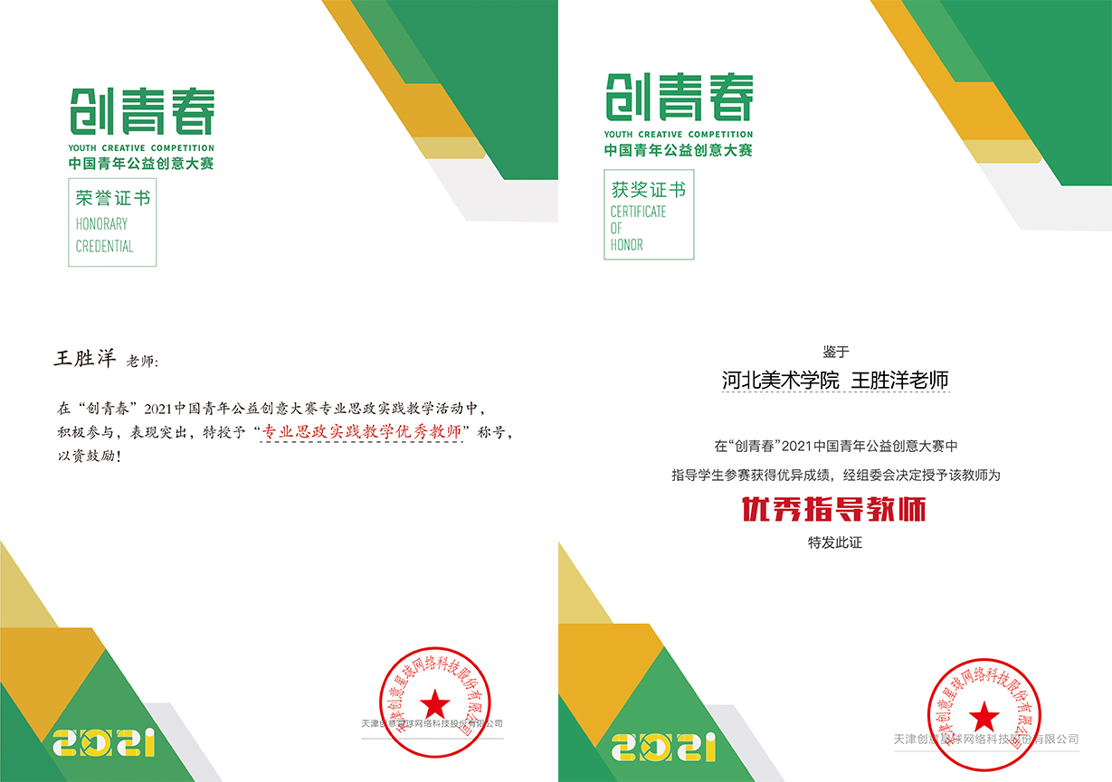 2021年11月,best365官网学生作品在团中央中国青年创业就业基金会、新华网等部门联合主办的“创青春”中国青年公益创意大赛中斩获佳绩,影视艺术学院王佳旭同学短视频作品《Rap沂蒙》获得二等奖,指导教师王胜洋获专业思政实践教学“优秀教师”称号。