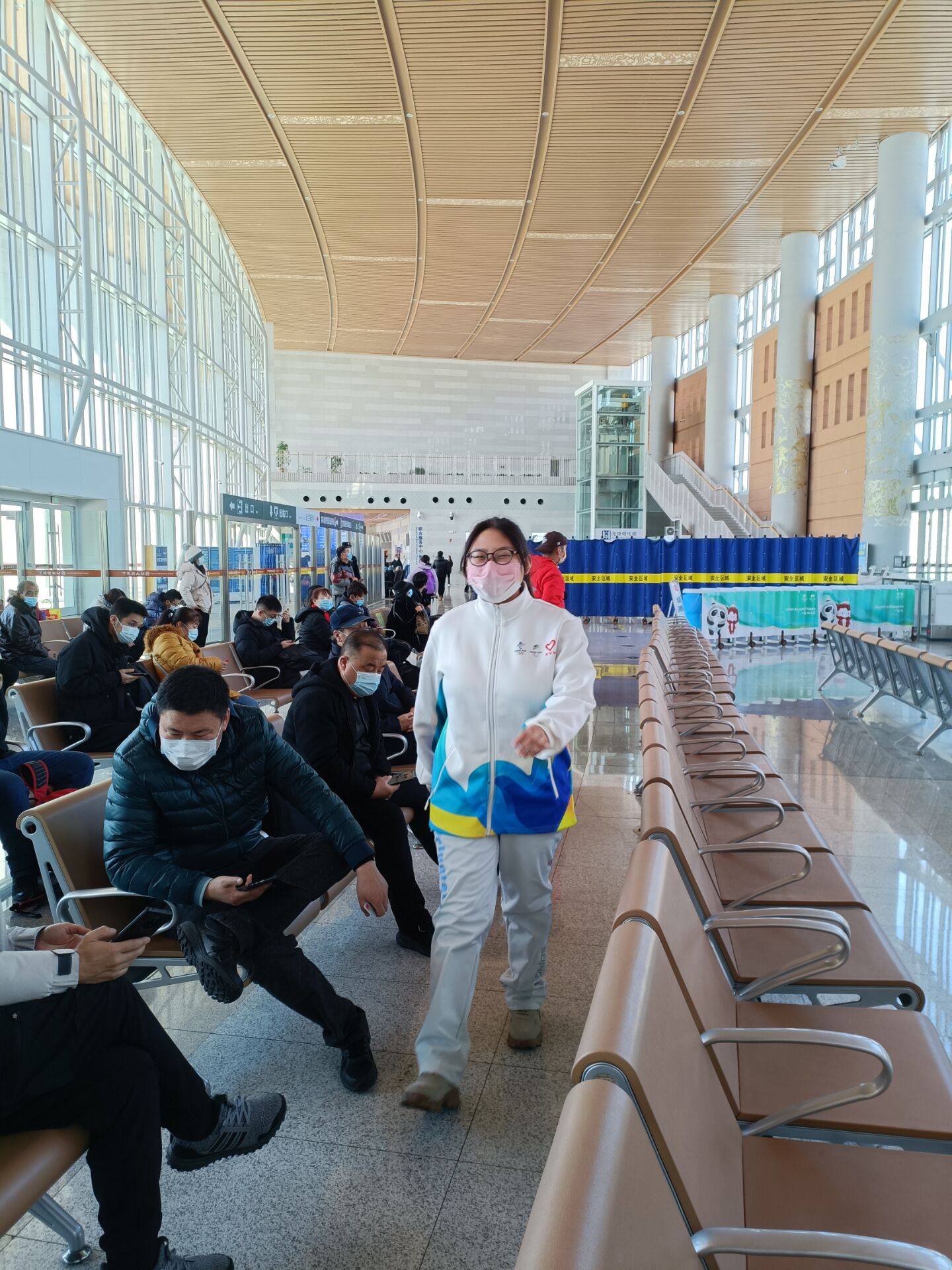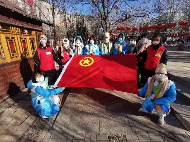 郭子琪负责在崇礼区政府楼前进行值班,帮助行人过马路,分发口罩。