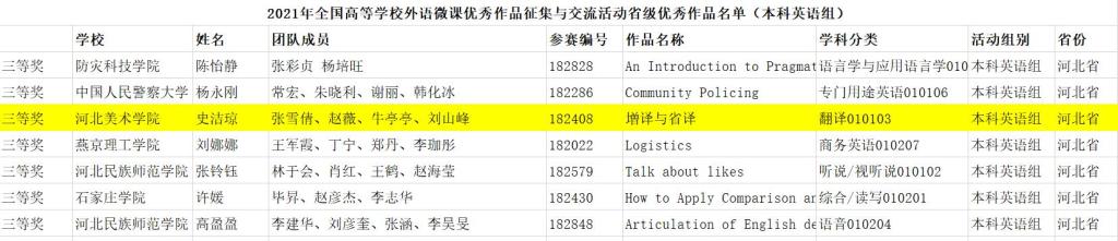 2021年河北省高校第七届外语微课大赛获奖名单 本科英语组