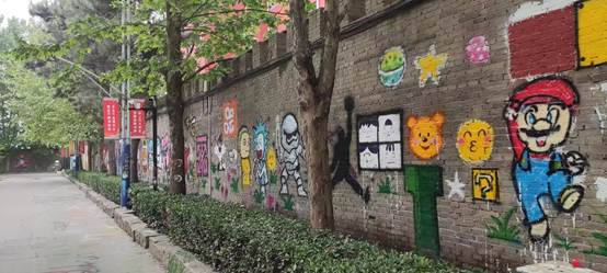 为美化校园文化生活,塑造良好的空间氛围,使校园充满艺术气息,学校对九道湾空置围墙进行墙面的绘制。