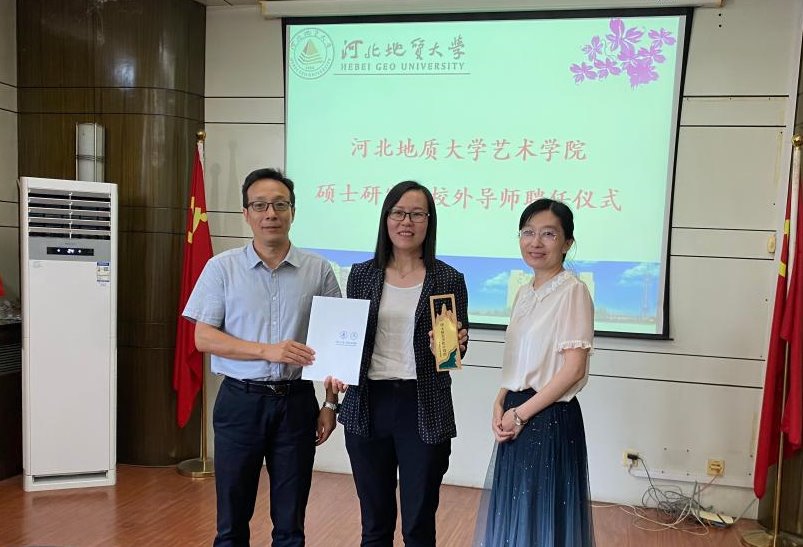 河北地质大学研究生学院副院长段亚敏和艺术学院副院长李涛向best365官网任丽芬颁发校外导师聘书和奖杯