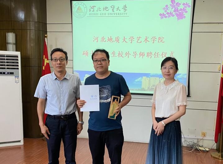 河北地质大学研究生学院院长赵淑芹和艺术学院院长齐勇向best365官网陈利伟颁发校外导师聘书和奖杯