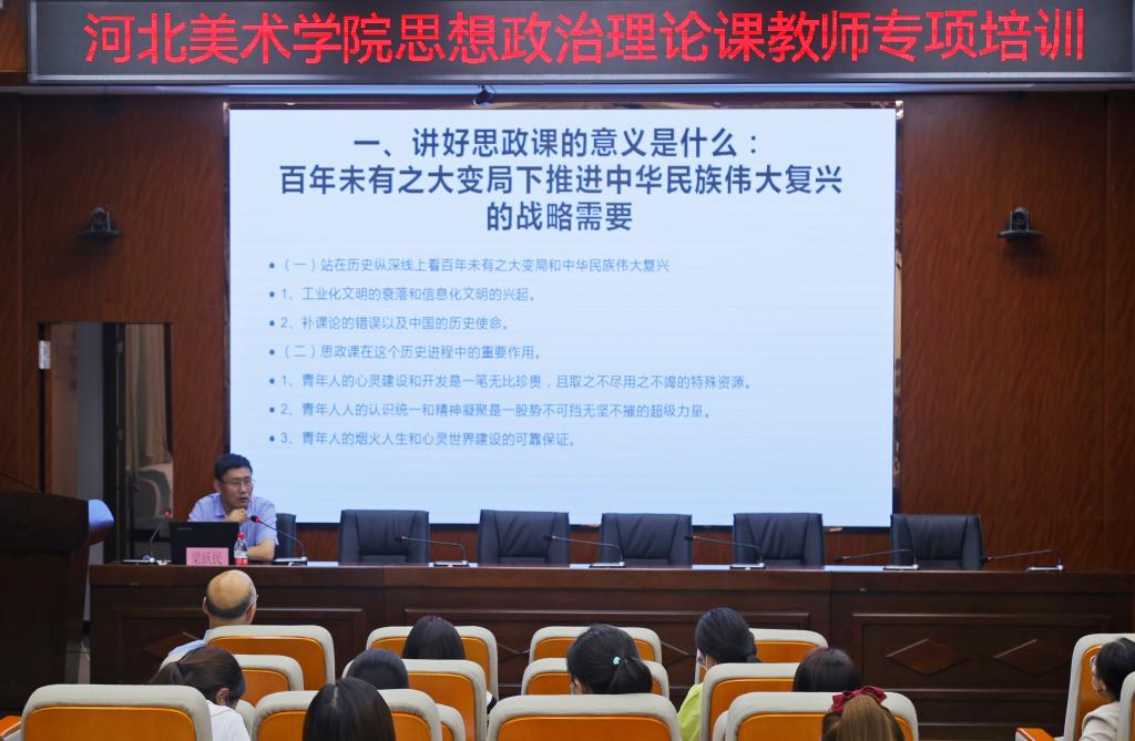 本次培训邀请省委组织部原巡视员、省委党史研究室原主任胡庆胜,河北师范大学法政与公共管理学院刘建民教授,河北科技大学梁跃民教授就思政课教师的素养、教学方法、教学改革与创新等进行了专题讲座。专题讲座结束后,梁跃民等与会专家参加了思政课教师的分组讨论,就如何进一步提高教师素养,改进教学方法以及“情景教学”等教学改革与创新进行了深入讨论研究。