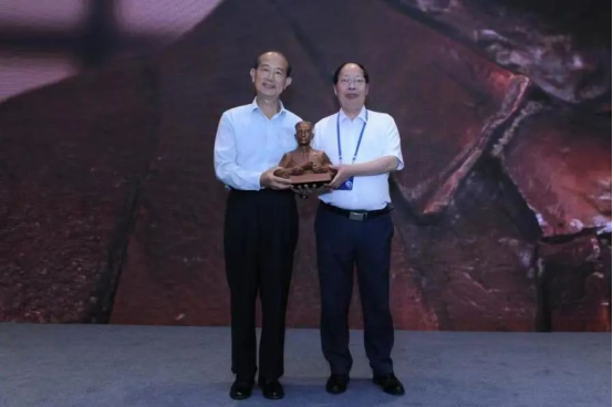 俄罗斯科学院院士、东南大学数学学院院长曹进德教授为熊庆来先生孙女婿陈力勤先生赠送了铜像模型