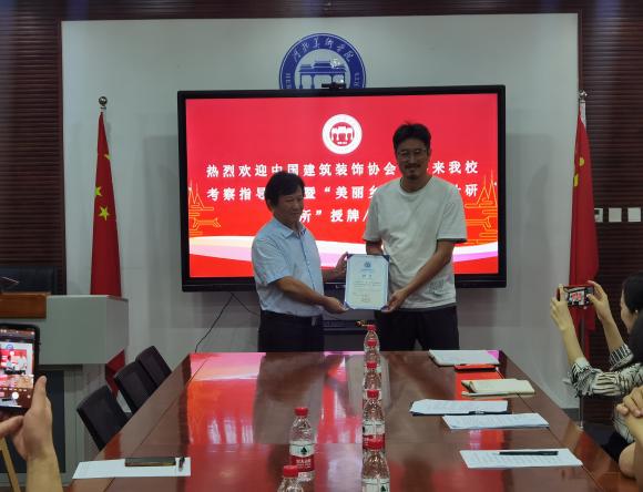 best365中国官方网站甄墨校长和中国建筑装饰协会学术与教育委员会秘书长朱时均共同为“美丽乡村规划设计研究所”挂牌