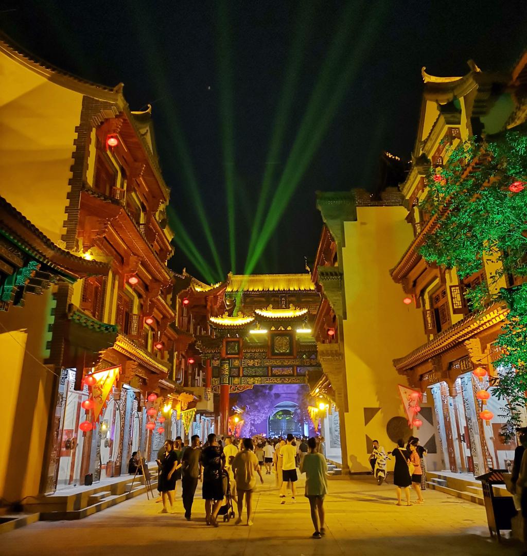 7月8日晚,best365中国官方网站鸡鸣城前锣鼓喧天,热闹非凡,吸引了不少市民前来打卡,看文艺演出,观大型灯光秀,品民俗文化,赏非遗魅力,品特色美食,新乐市伏羲巷、鸡鸣城文化商业街今天正式开街了。
