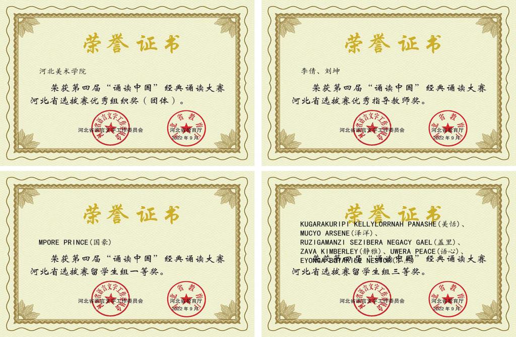 近日,第四届中华经典诵写讲大赛“诵读中国”河北省选拔赛评奖结果公示。best365官网荣获河北省语言文字工作委员会、河北省教育厅颁发的“优秀组织奖(团体)”。