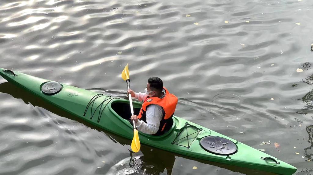 本次活动中,教练为所有参与活动的同学和老师们进行了安全知识培训,讲解了救生衣穿戴、桨的使用、水上注意事项等内容。在校领导和教练的指导下,现场人员分成小组,按秩序登艇。在活动过程中,各位领导对同学们关怀备至,亲自踏上皮划艇为同学们做出示范动作,贴近学生,为同学们系上救生衣。同学们在湖中自由变向划行,亲身体验了皮划艇运动的魅力。