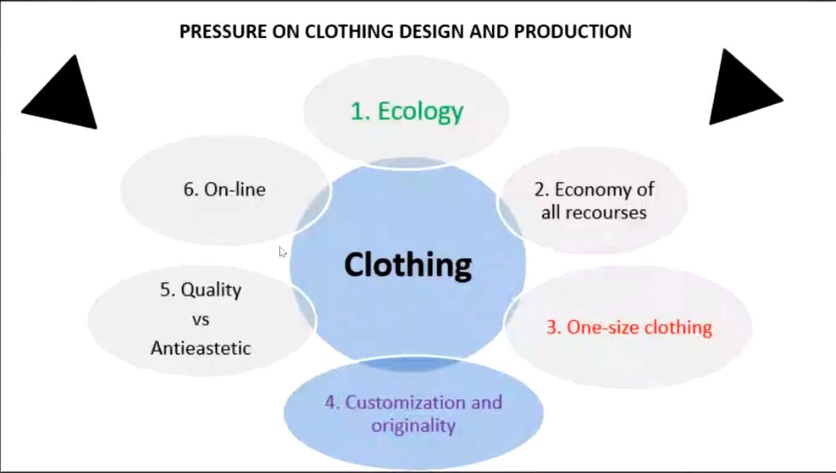 第一个模块包括现在流行时尚概念的变化。他认为时尚不再与大发行量、高边缘化和声望联系在一起,不同的时尚未来会出现在不同的领域——廓形、技术、颜色、质地面料、手工。此外还讲了一些与服装设计生产相关的关键词与一些时尚界合作的案例。此外还就消费者品牌消费和舒适度着装的问题进行了分析,讨论了时尚界的热门话题-可持续性发展以及时尚界广告新的动向。